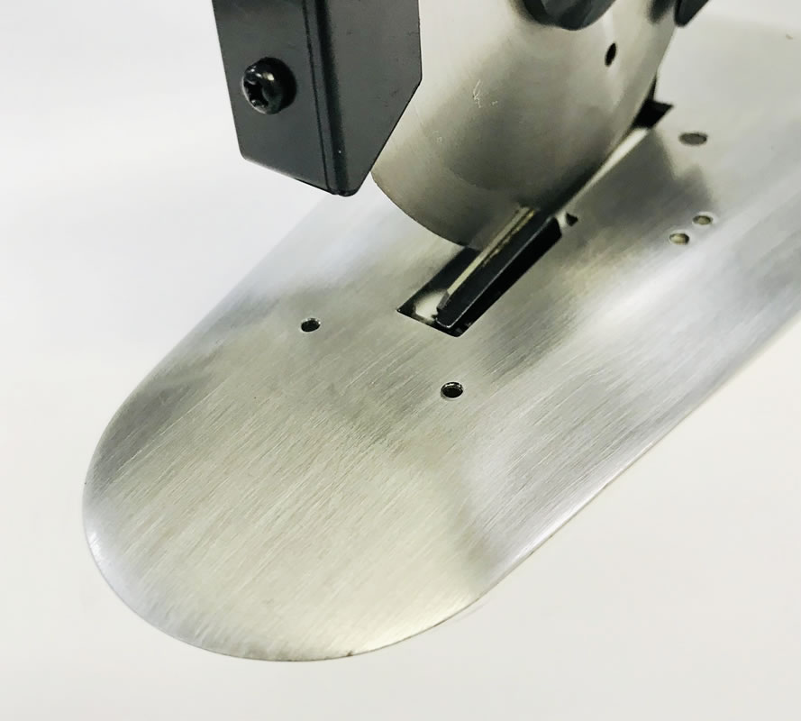 薄くて硬いベースプレートは、厚く積層された重い生地でも、静かに素早く、スムーズな裁断を可能にします。